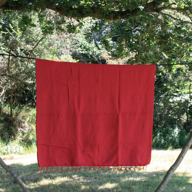 Tibetaanse deken katoen, acryl (yakwol zie omschrijving), afmeting: 110x230cm, ± 450gr. made in Nepal.