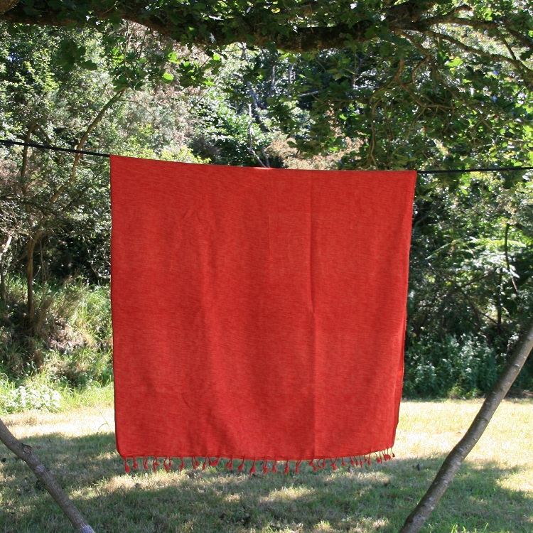 Tibetaanse deken katoen, acryl (yakwol zie omschrijving), afmeting: 110x230cm, ± 450gr. made in Nepal.