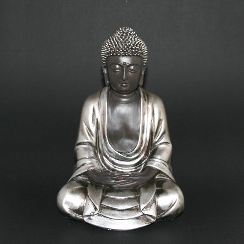 Japanse Boeddha, polystone, zilver 24cm (419)