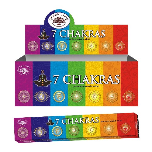 7 Chakra's 15gr is een heerlijke wierook geur van masala. De geur komt voort uit de natuurlijke ingrediënten die men gebruikt. Zoals kruiden, harsen en Indiase specerijen (masala). Brandtijd: 45 min. Ze zitten per 12 pakjes wierook in een mooie display do