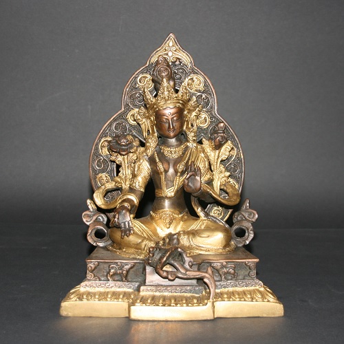Tara is ontstaan uit de tranen die Avalokitevara uit compassie met alle wezen voelde. Tara heeft 21 verschijningsvormen in diverse kleuren. De Witte en Groen Tara zijn de oudste vormen. Haar naam staat voor het begrip “oversteken/mededogen”zij beschermt de mensen terwijl die de “Oceaan van het bestaan”oversteken.