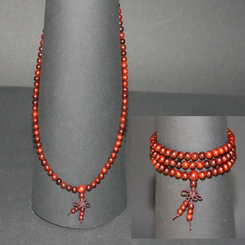 Mala 108 houten kralen, dikke kraal 6mm, lengte collier 60cm, met elastiek zodat deze eventueel te dragen is als armband.