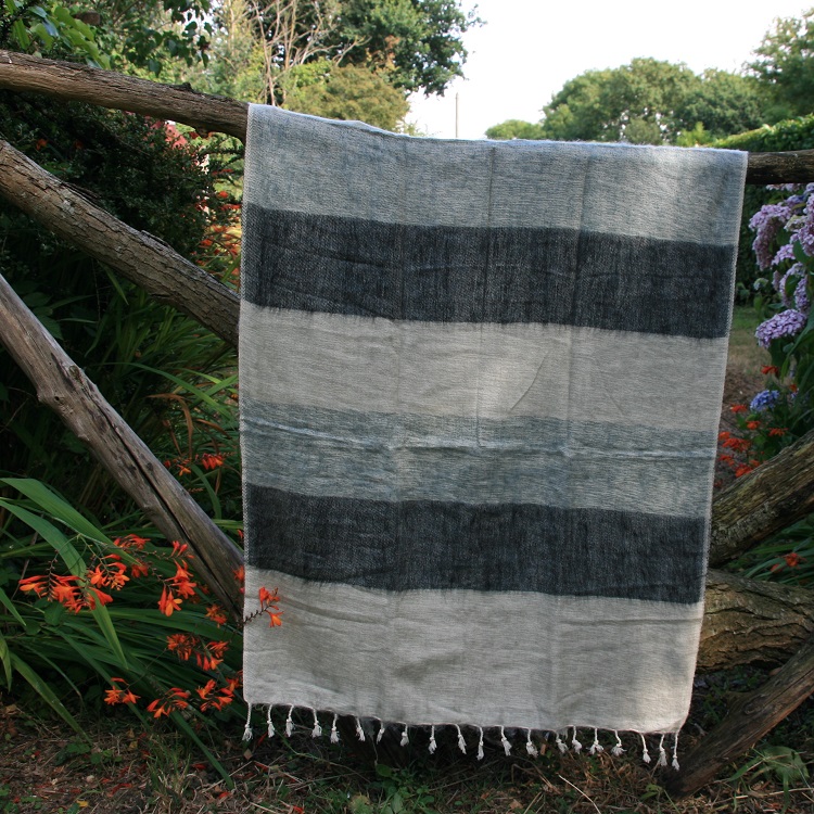 Tibetaanse Yakwol deken & sjaal. De dekens en sjaals worden gemaakt in Nepal. Ze noemen het Yakwol omdat ze nadat ze geborsteld zijn de uitstraling van Yakwol krijgen. Het is dus geen wol. In dit geval gebruiken ze in Nepal Yakwol als een merk/handelsnaam.