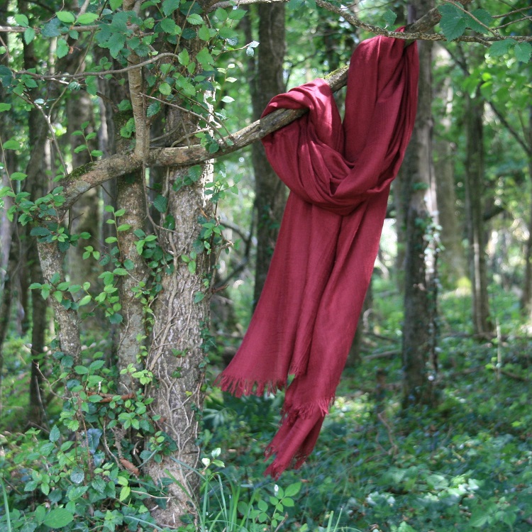 Voorjaars sjaal wol & katoen, bordeaux rood